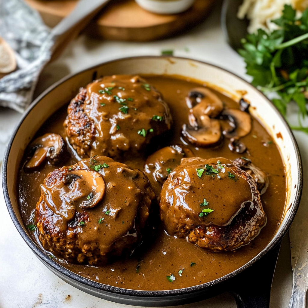 Salisbury steak is a beloved comfort food that features tender, juicy beef patties smothered in a rich, savory gravy. This simple yet satisfying dish brings warmth and nostalgia to the dinner table, making it perfect for family meals or special gatherings. With straightforward preparation and everyday ingredients, you can create this classic dish in no time. Serve it with creamy mashed potatoes or vibrant steamed vegetables for a complete and delightful dining experience.