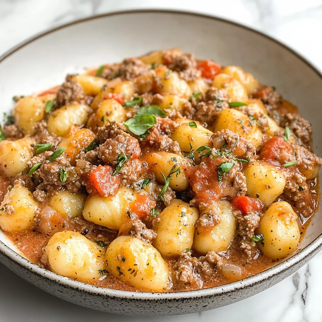 This Ground Beef Gnocchi is all about that flavor payoff. With the right ingredients—like good quality olive oil and fresh Parmesan—you get a rich, hearty dish that feels special without taking hours in the kitchen. Plus, the gnocchi adds that delightful, pillowy texture that just hits differently compared to regular pasta (trust me on this). If you haven’t made it yet, tonight’s the night to give it a go. I can’t wait to hear how yours turned out, so drop a comment if you added anything or made it your own!