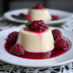 White Chocolate and Raspberry Panna Cotta is a delightful Italian dessert. It combines the creamy richness of white chocolate with the tartness of fresh raspberries. This dessert typically features a smooth, gelled cream base infused with melted white chocolate, creating a luxurious texture that melts in your mouth. The raspberry coulis, drizzled on top or served as a side, enhances the flavor profile and adds a vibrant color. It’s perfect for special occasions or a sweet treat at home.