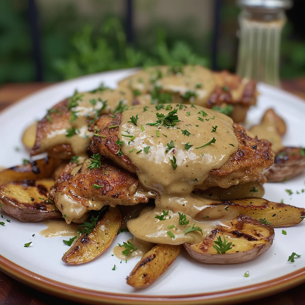 Ina Garten’s Chicken Thighs with Creamy Mustard Sauce is like a warm hug on a plate. Picture this: golden-brown chicken thighs, sizzling in a creamy sauce that smells like heaven and tastes even better. The rich mustard flavor dances with the cream, creating a symphony of deliciousness that you can’t resist.