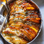 Cheesy Root Vegetable Gratin is a comforting, indulgent dish featuring layers of tender potatoes, carrots, and parsnips enveloped in a rich, creamy cheese sauce. Topped with gooey Gruyère and cheddar, this gratin is perfect for family gatherings or cozy weeknight dinners. With its delightful blend of flavors and textures, it’s sure to impress everyone at the table while bringing warmth and joy to your meal.