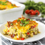 Keywords: Feel free to substitute bacon with turkey bacon or sausage for different flavors. You can also add vegetables like bell peppers or spinach to customize your bake further. Leftovers can be stored in an airtight container for up to three days or frozen for two months.