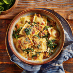 Creamy Sun-Dried Tomato & Spinach Ravioli is a delightful dish that brings together cheese-filled ravioli and a rich, creamy sauce infused with sun-dried tomatoes and fresh spinach. This comforting pasta dish is perfect for weeknight dinners or special gatherings, offering a burst of flavor in every bite. Quick to prepare and visually stunning, it’s sure to impress your family and friends.