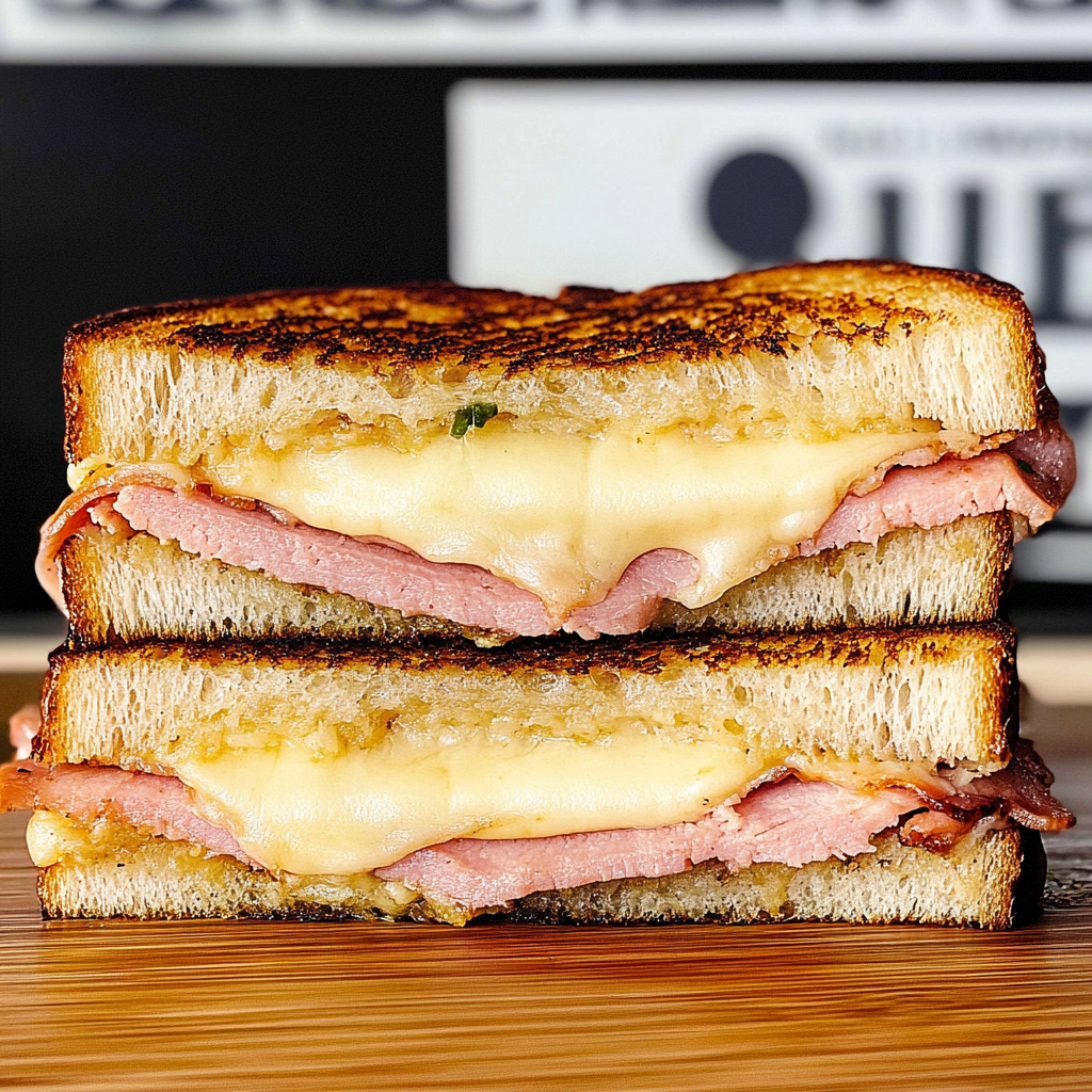Assemble the Sandwich: Spread Dijon mustard on one side of each slice of bread. Layer on sliced ham followed by generous amounts of Gruyere cheese—don’t hold back; you want it gooey!