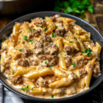Stir cooked fettuccine into the skillet with your creamy beef mixture. If it’s too thick, add reserved pasta water little by little until you reach desired consistency. Transfer to plates and enjoy your masterpiece!