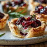 Honey-Glazed Cranberry Brie Tartlets are a delightful fusion of sweet and savory flavors, perfect for any occasion. These bite-sized treats feature flaky puff pastry filled with creamy Brie, tart cranberries, and a drizzle of honey, topped with crunchy nuts and fresh thyme. Ideal for holiday gatherings or casual get-togethers, these tartlets are sure to impress guests and leave them craving more.