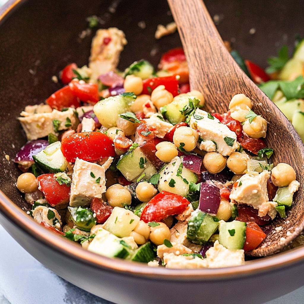 Mediterranean Chickpea Tuna Salad is a refreshing and protein-packed dish perfect for summer gatherings or meal prep. With a harmonious blend of chickpeas, tuna, vibrant vegetables, and a zesty dressing, this salad delivers restaurant-quality flavors right at home. It’s not only visually stunning but also highly adaptable to suit various dietary needs. Enjoy it as a light lunch or a hearty side dish that will impress your guests!
