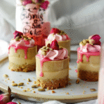 Mini pistachio-rose cheesecakes are small-sized desserts combining creamy cheesecake with fragrant rosewater and crunchy pistachios. They’re perfect for gatherings or an indulgent treat at home.