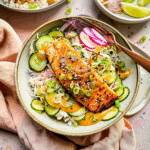 Miso Glazed Salmon Rice Bowl is a culinary masterpiece that combines rich umami flavors with a satisfying crunch. Picture this: tender salmon fillets, kissed by a sweet and savory miso glaze, served over fluffy rice. It’s like a cozy hug from the inside out!
