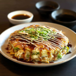 An Okonomiyaki recipe features a savory Japanese pancake filled with a variety of ingredients like cabbage, meat, seafood, and more. The name “Okonomiyaki” translates to “grilled as you like it,” showcasing its versatility. You can customize the filling based on your preferences. The dish is typically cooked on a griddle or in a frying pan, resulting in a crispy exterior and a soft interior. Enjoying this meal with toppings like mayonnaise, okonomiyaki sauce, and bonito flakes makes it even more delicious.