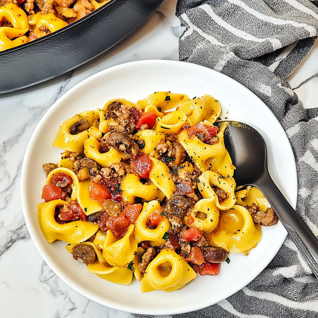 One-Pan Skillet Bacon Cheeseburger Tortellini is a quick and delicious meal that combines the savory flavors of crispy bacon, ground beef, and gooey cheddar cheese with tender tortellini. This one-pan wonder transforms an ordinary weeknight dinner into a flavorful feast, perfect for family gatherings or casual entertaining. With simple ingredients and minimal cleanup, this dish will have everyone asking for seconds!