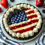 In conclusion, the Oreo Cookie Crust Flag Pie is an eye-catching dessert that combines a delightful chocolate crust with a variety of creamy fillings. Perfect for festive occasions, this pie not only tastes amazing but also looks stunning on any table. With easy preparation and endless flavor possibilities, it’s sure to become a favorite among family and friends. Enjoy making this delicious pie and celebrate in style!