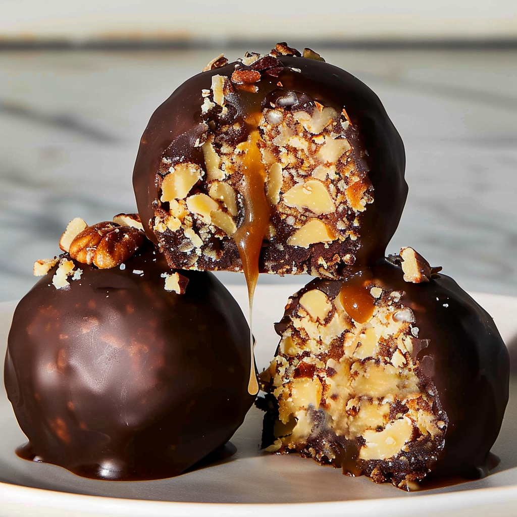 - Visually, they’re coated in chocolate and sprinkled with crushed pecans, looking stunning on any dessert table.