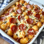 Pepperoni Pizza Tater Tot Casserole is a fun and delicious twist on classic pizza, perfectly combining the crispy texture of tater tots with cheesy goodness and savory pepperoni. This easy-to-make casserole is ideal for gatherings, game days, or a cozy family dinner. With layers of flavor and a satisfying crunch, it’s sure to be a crowd-pleaser that keeps everyone coming back for seconds.