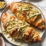Pistachio Cream Croissants are a delightful pastry filled with rich pistachio cream, offering a unique twist on the classic French croissant. These flaky, buttery pastries provide a perfect balance of texture and flavor. The pistachio cream is typically made from ground pistachios, sugar, and cream, creating a smooth filling that enhances the croissant’s lightness. Enjoy them fresh from the oven or at room temperature for breakfast or as a luxurious snack.