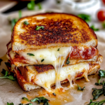 Pizza Grilled Cheese is a delightful fusion of two comfort food favorites: pizza and grilled cheese sandwiches. This dish combines gooey melted cheese with savory pizza toppings, all sandwiched between crispy, buttery bread. It’s perfect for lunch, dinner, or a late-night snack. You can customize it with your favorite toppings, such as pepperoni, mushrooms, or bell peppers, making it a versatile and fun meal choice.
