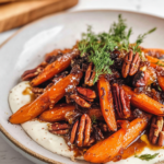 Roasted carrots with candied pecans and goat cheese pair wonderfully with grilled chicken or fish as a main course. They also complement quinoa salad or couscous for a hearty vegetarian option. The dish’s sweet and savory flavors make it versatile enough to serve at any gathering or holiday meal.