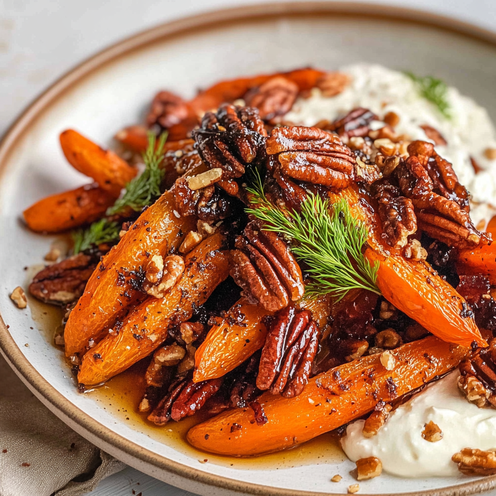 Roasted carrots with candied pecans and goat cheese is a vibrant, flavorful dish that perfectly balances sweet and savory elements. The tender, caramelized carrots are paired with crunchy, candied pecans and creamy goat cheese, creating an elegant side dish or main vegetarian course that will impress your guests at any gathering. This easy-to-make recipe showcases the natural sweetness of the carrots while adding a delightful crunch and tanginess.