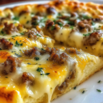Sausage Gravy Biscuit Breakfast Pizza combines two beloved breakfast staples: pizza and sausage gravy. This dish features a fluffy biscuit base topped with a rich and creamy sausage gravy, scrambled eggs, and melted cheese. It’s perfect for brunch or a hearty breakfast. You can customize the toppings to include your favorite ingredients, making it versatile and delicious.