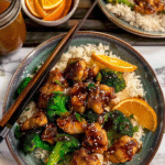 Once cooked through, remove from oven and drizzle remaining sauce over everything before serving. Transfer to plates and watch everyone dive in as if it’s their last meal—trust me, it’ll be gone faster than you can say “Sheet Pan Chili Ginger Orange Chicken & Broccoli!”