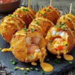 Shrimp Crab Nacho Corn Dogs are a unique twist on traditional corn dogs. They feature a blend of shrimp and crab meat mixed with nacho elements, like cheese and spices, all wrapped in a flavorful cornmeal batter. This dish combines the crispy texture of corn dogs with the savory taste of seafood and nachos, making it an exciting option for snacks or appetizers.