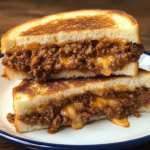 A Sloppy Joe Grilled Cheese combines two beloved comfort foods into one delicious sandwich. It features seasoned ground beef cooked in a tangy tomato sauce, piled between two slices of melted cheese and crispy bread. This fusion not only provides the rich flavors of classic Sloppy Joes but also adds the gooey, cheesy goodness of grilled cheese. It’s perfect for a quick weeknight dinner or a hearty lunch that satisfies all ages.