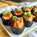 In summary, Spicy Salmon Sushi Cups offer a delicious and exciting way to enjoy sushi flavors in a convenient form. With fresh ingredients like salmon and avocado paired with sushi rice, they create an appealing dish for any occasion. Whether you’re hosting a party or seeking a flavorful snack, these cups are easy to prepare and full of nutrition. Try making them at home to impress your friends and family with this creative twist on classic sushi!