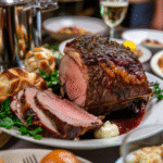 Store leftover standing rib roast in an airtight container in the fridge for up to four days. For reheating, place slices in a baking dish with a splash of broth and cover with foil; warm them in a 300°F oven until heated through. Yorkshire pudding is best enjoyed fresh but can be reheated briefly in a hot oven.
