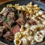 Now grab your fork because it’s time for some serious indulgence! Enjoy steak bites and shell pasta in garlic butter Alfredo sauce—the ultimate comfort food that’ll make you feel like a culinary rockstar right at home!