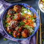 Assemble Your Bowls: Serve rice topped with glazed meatballs. Garnish generously with chopped green onions and sesame seeds for extra flair—you’ll want those Instagram photos!