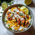 Savor the vibrant flavors of the Street Corn Chicken Rice Bowl, a delightful blend of smoky grilled corn, tender chicken, and zesty lime sauce, all served atop fluffy rice. This dish is perfect for busy weeknights or weekend gatherings, bringing everyone together for a fiesta of taste. With customizable ingredients and fresh toppings, each bite promises a burst of excitement that will leave you craving more.