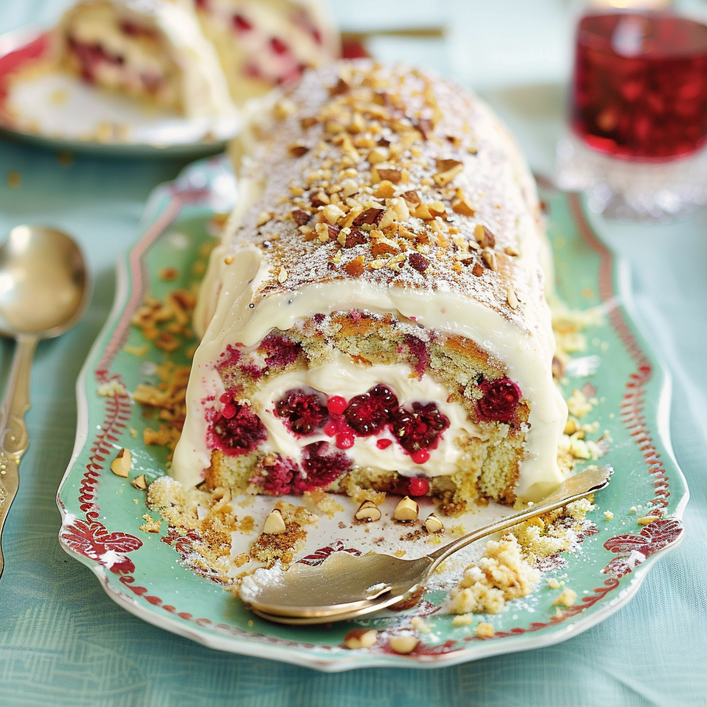 A White Chocolate Raspberry Yule Log is a festive dessert made from a light sponge cake rolled with raspberry filling and covered in white chocolate ganache. This popular holiday treat combines rich flavors with a beautiful presentation that delights both taste buds and eyes.