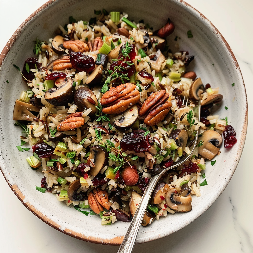Wild Rice & Mushroom Stuffing with Cranberries & Pecans