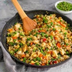 Sometimes I whip up this leftover friendly dinner chicken fried rice when my fridge resembles a scavenger hunt. My friends call it “fridge clean-out night,” but they always leave happy—and full!