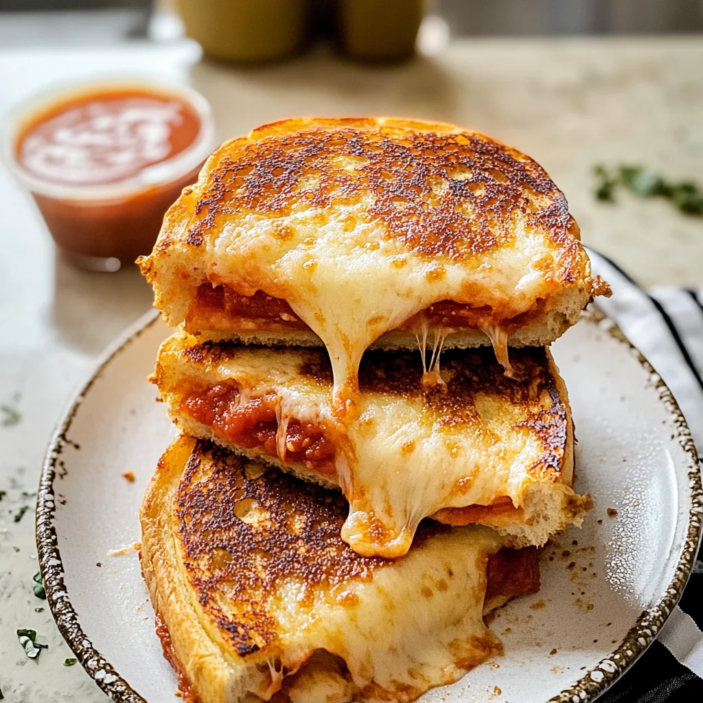 The skillet’s sizzling, and the smell of melting cheese is filling the kitchen. The moment I flip the sandwiches, it’s clear: this Pizza Grilled Cheese is about to be a hit.