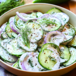Creamy Cucumber Salad is the ultimate summer dish that combines crunchy cucumbers with a rich, tangy dressing for a refreshingly delicious experience. This easy-to-make salad is perfect for picnics, barbecues, and casual gatherings. With its vibrant colors and mouthwatering aroma, it’s sure to impress your guests and bring back fond memories of sunny days spent with loved ones.