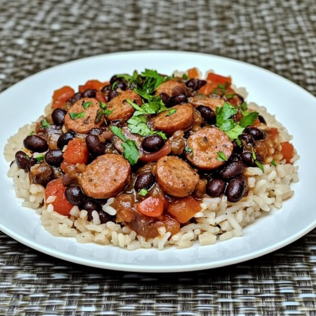 Keywords: For a lighter option, substitute sausage with chicken or turkey. Enhance flavors by adding corn or extra spices like smoked paprika. If using dried black beans, soak them overnight for quicker cooking.