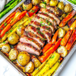 Yes, you can easily prepare Easy Sheet Pan Pork Tenderloin with Vegetables ahead of time. You can marinate the pork and chop the vegetables a few hours in advance or even overnight. Just store them separately in airtight containers in the fridge. When you’re ready to cook, simply assemble everything on a sheet pan and bake as directed for a quick meal.