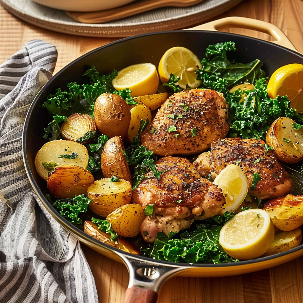 Irresistible Skillet Lemon Chicken & Potatoes with Kale