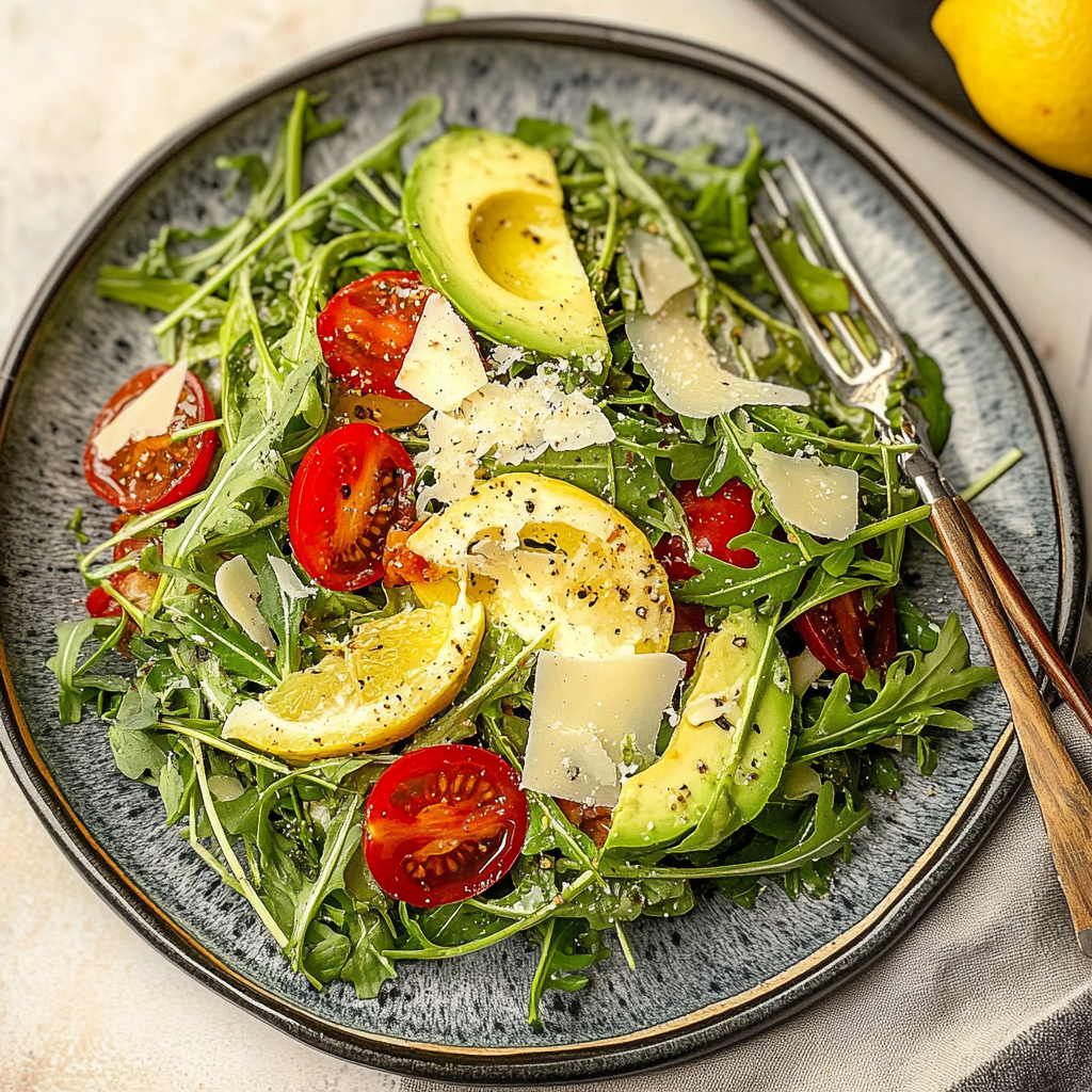 Refreshing Simple Lemony Arugula Salad With Avocado